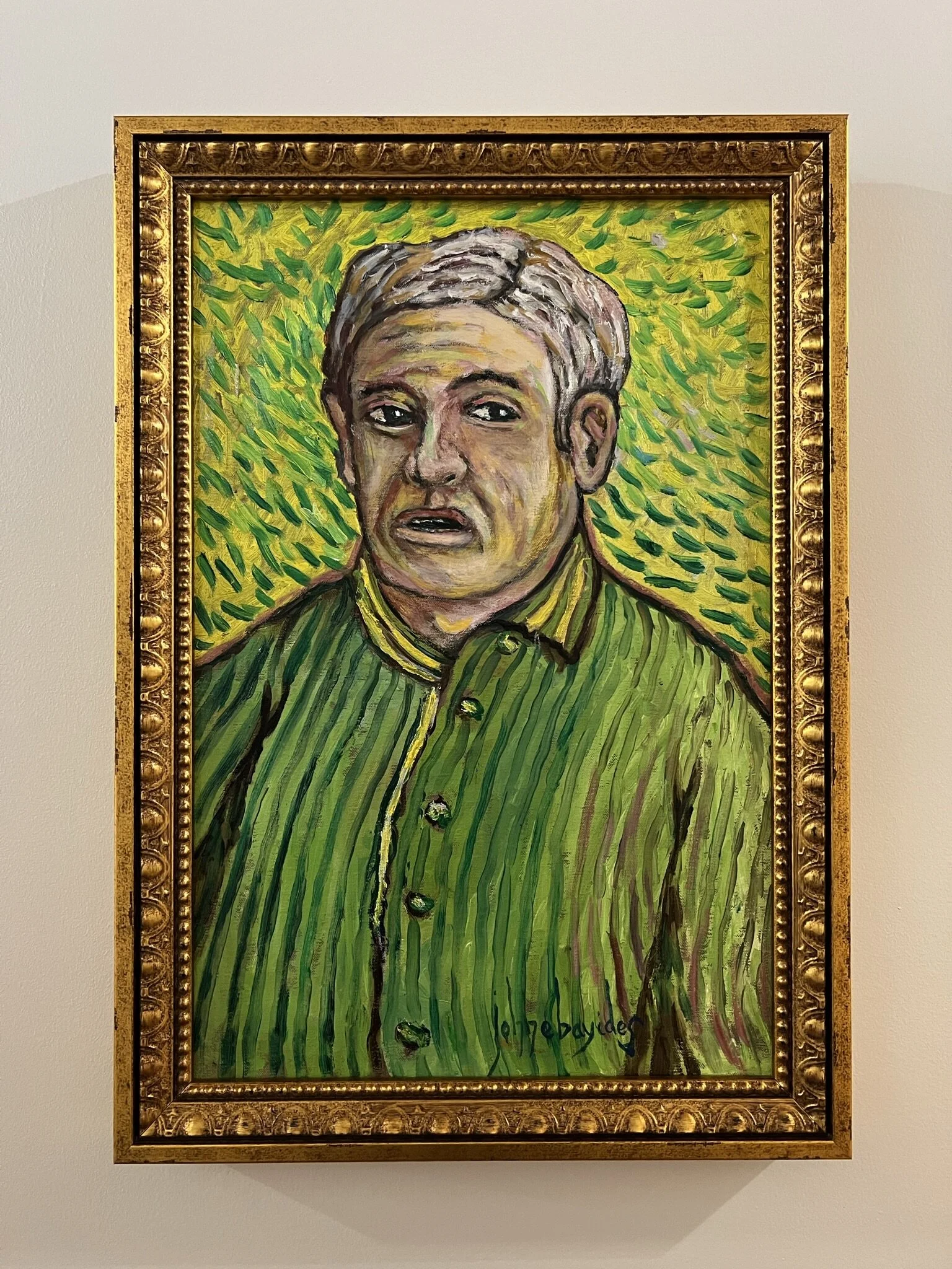 In the hall, we've recreated Bayides' art studio as a tribute to his lasting legacy. The display features his actual easel, paintbrushes, and other supplies he used to create these stunning works. It provides visitors a glimpse into his creative process.